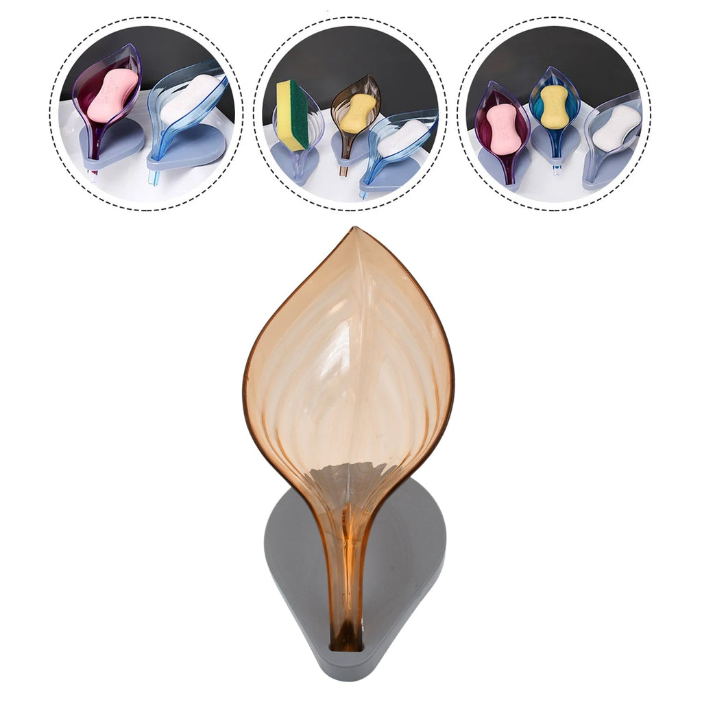 Plastic Leaf Shape Soap Box Self Draining Bathroom Soap Holder, Decorative Drainage Plastic Soap Dish with Draining Tray (1 Pc / With Color Box)