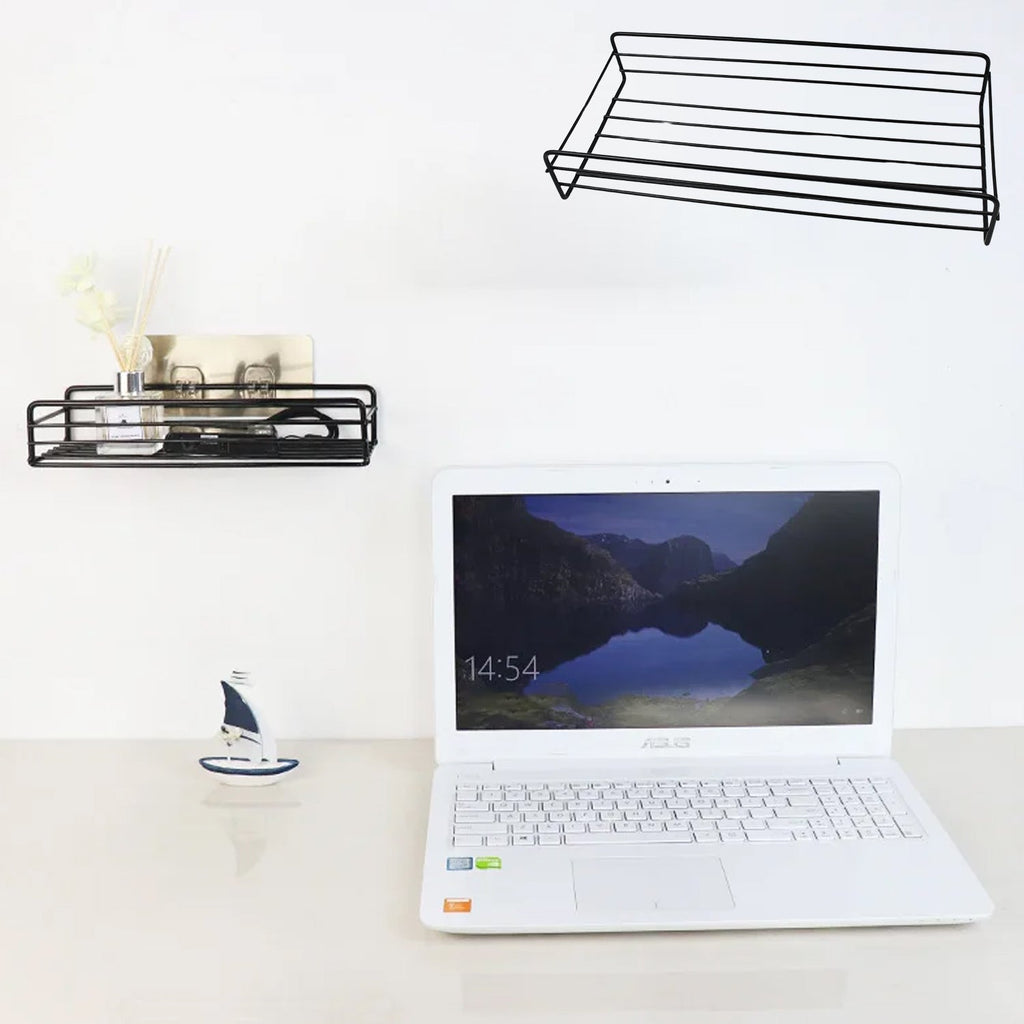 - no drilling and damage to a wall, and requires no additional tools. The packaging contains one piece of shelf with two adhesive stickers, just peel off the sticker cover and install. A powerful transparent adhesive hook, that sticks to the surface for a long time, is more durable and stronger.