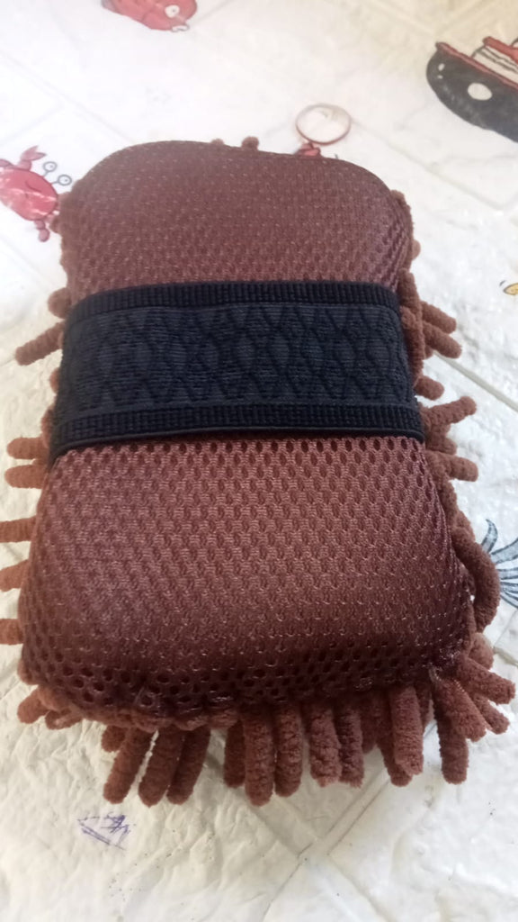- Scratch-less smooth microfiber surface High absorb power for shampoo Hand grip elastic for easy holding.